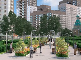 На придомовом участке застройщик возведет крупный детский сад, бизнес-парк, музей и аккуратный храм. Образовательное учреждение будет построено вместе с корпусами, относящимися к первой очереди проекта.