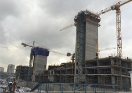 В секциях под номерами 1-3 ведется монтаж лифтовых шахт. Параллельно обустраиваются жилые этажи. В настоящее время работы ведутся на уровне четвертого этажа.